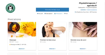 Gagnez du temps >Utilisée par des centaines de physiotherapeutes en Suisse, depuis plus de 10 ans. Agenda, dossier patient, facturation LAMAL envoyé aux assurances, rappels SMS et prise de rdv en ligne.